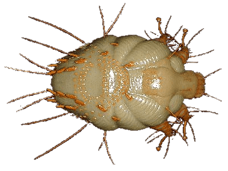 Uyuz böceği(Sarcoptes scabiei); 0.3-0.5 mm. büyüklüğündedir. Bir çeşit parazit olarak isimlendirilir. Akar, mayt ve mite organizmalarının familya üyesi sayılabilir. Boyutundan dolayı çıplak gözle görülmesi pek mümkün olmayan bu zararlı tür, ortalama olarak 4-8 hafta aralığında yaşar. Yassı ve oval bir fiziki yapıya sahip olan bu böceğin derisi kitin olarak adlandırılan bir madde ile örtülüdür.